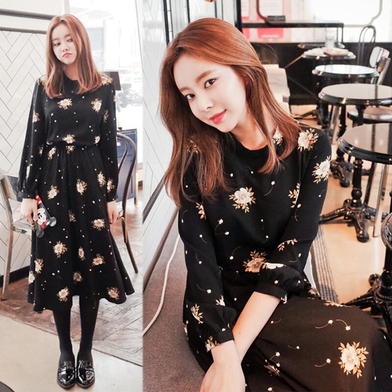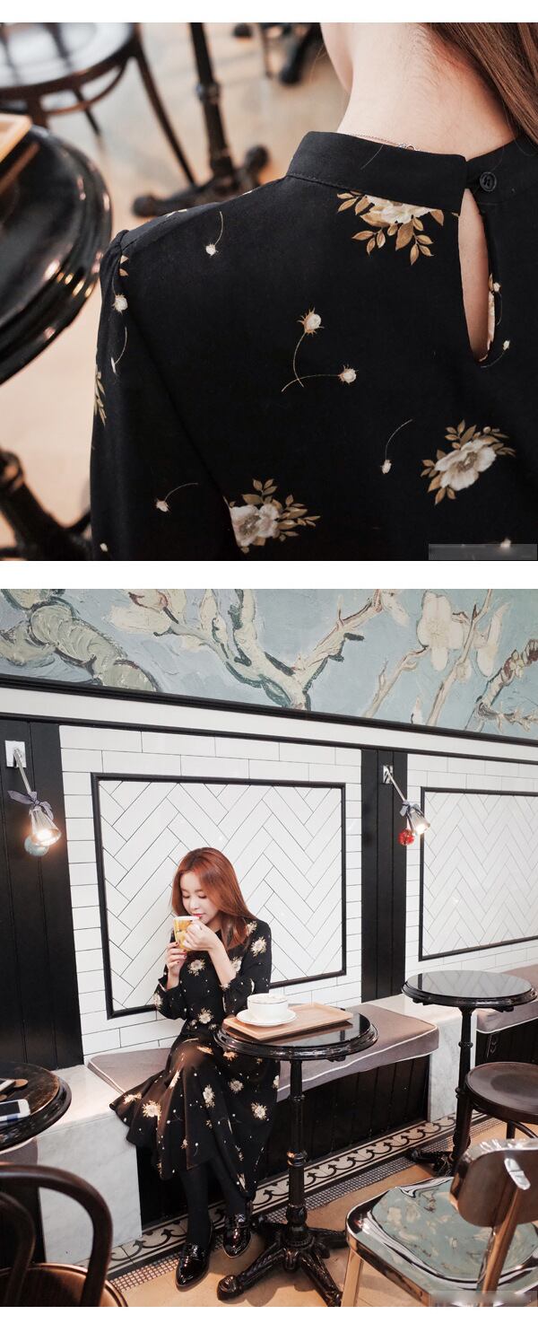 花柄 秋冬ワンピース長袖 シフォン森ガール ひざ下丈 ロング 秋 ワンピース ワンピース 結婚式 パーディー 秋 シフォンワンピース 上品 大人デート 韓国 新作 [nini0093] | poillypecoraワンピースストア