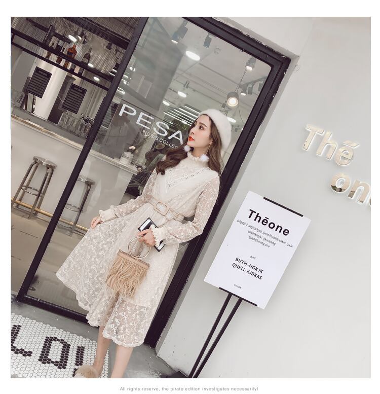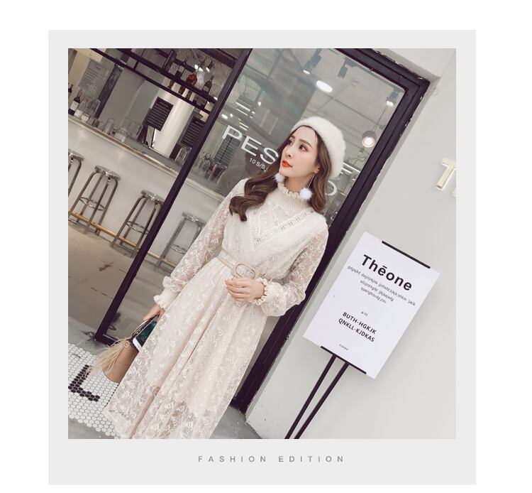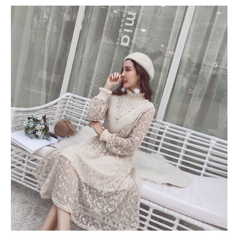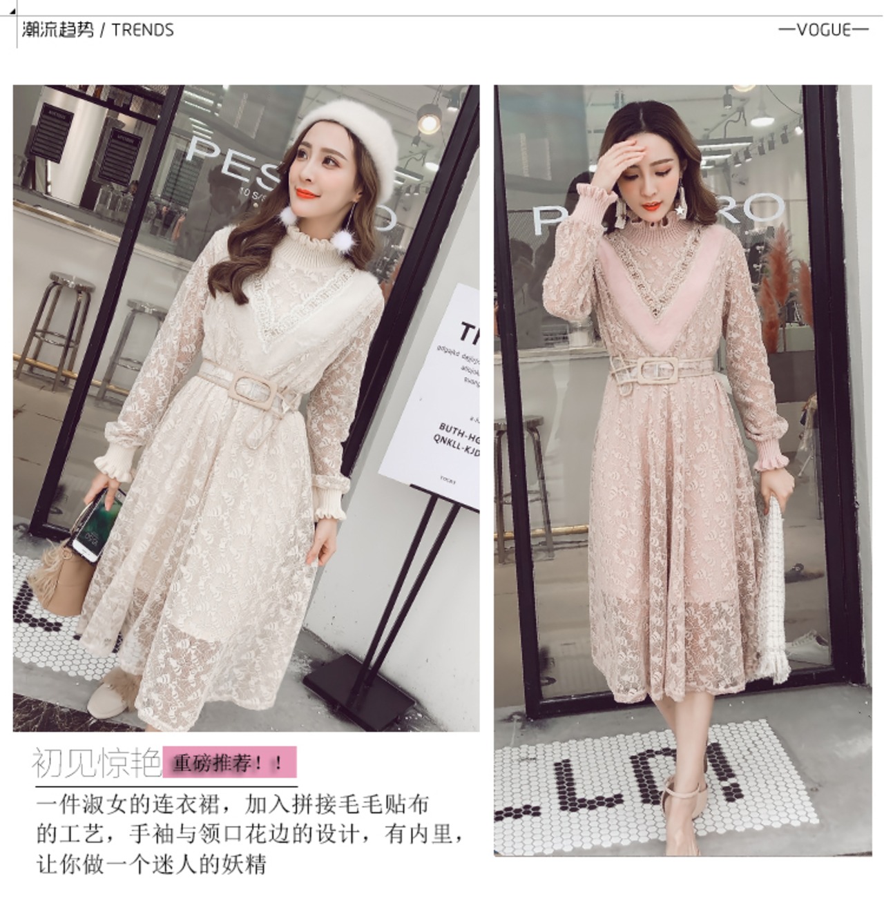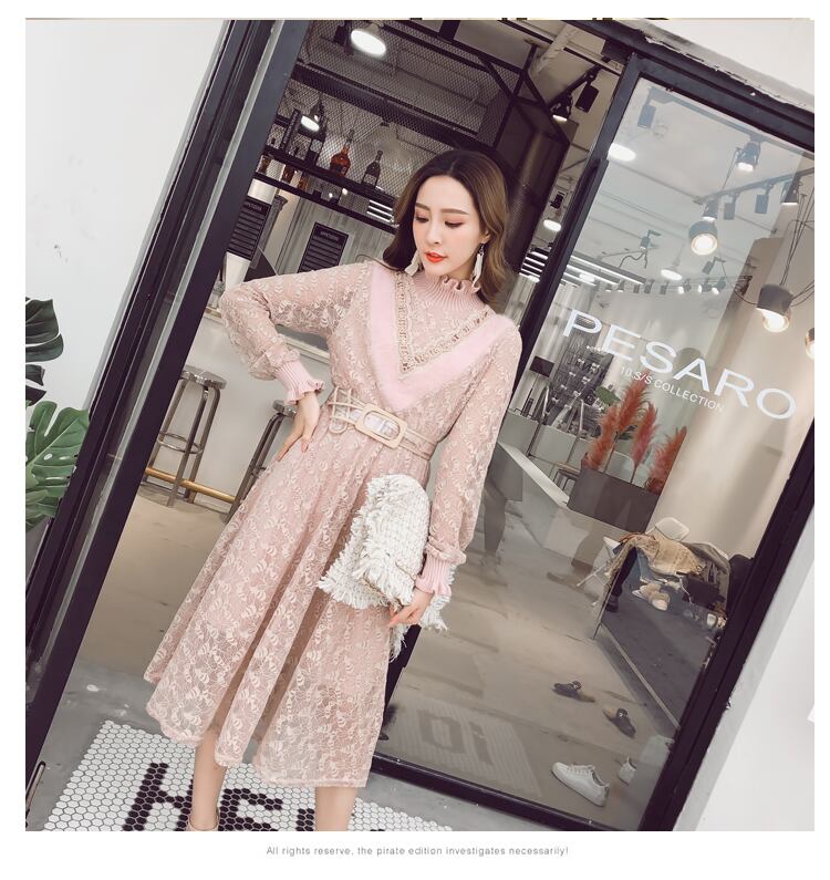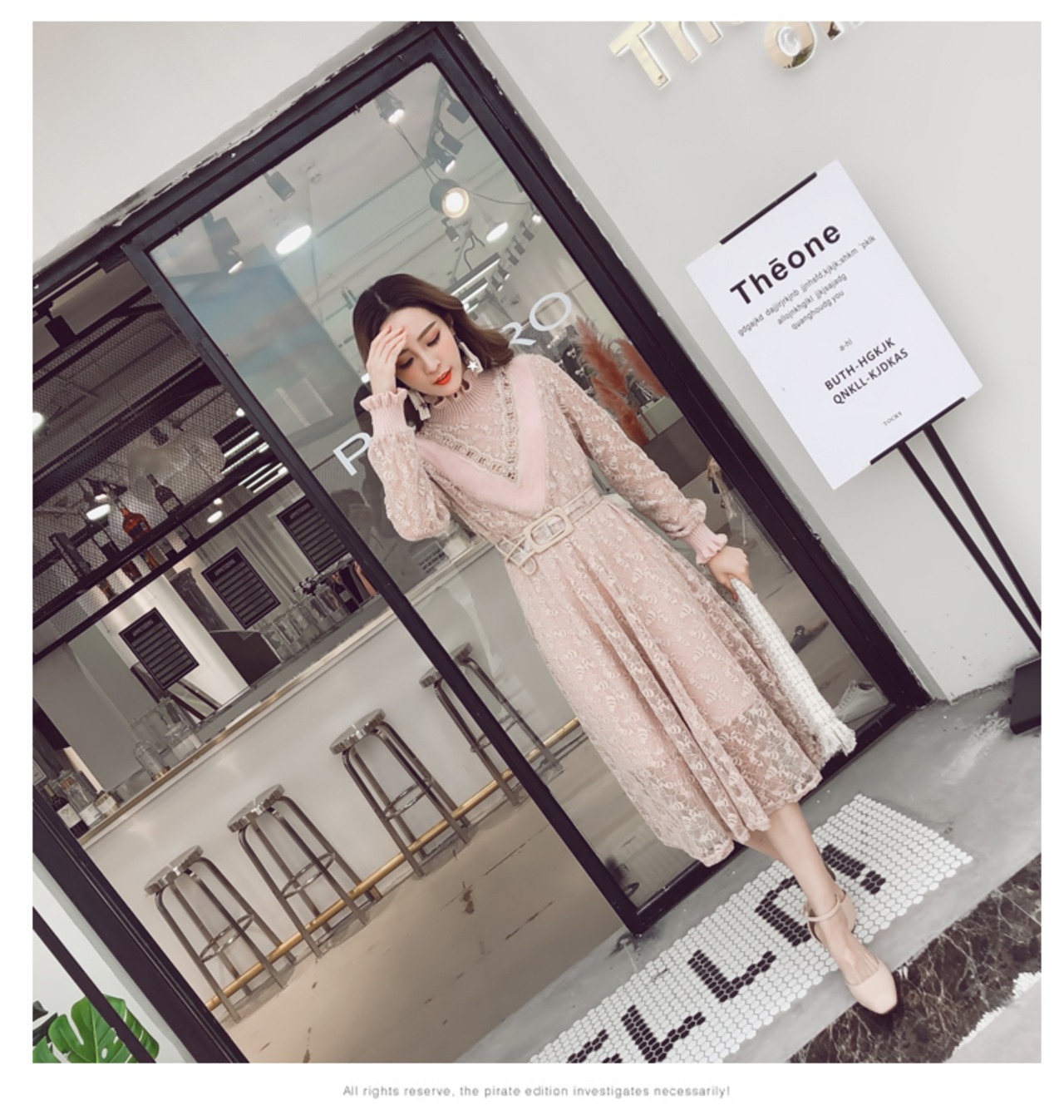 長袖 レース 秋冬 ワンピース ドレス 大人 レース上品 セクシー フォーマル パーティー 韓国 秋 新作 上品 結婚式 ひざ下丈ワンピース ドレス [nini0095] | poillypecoraワンピースストア