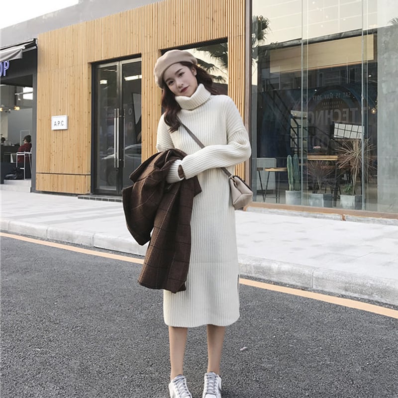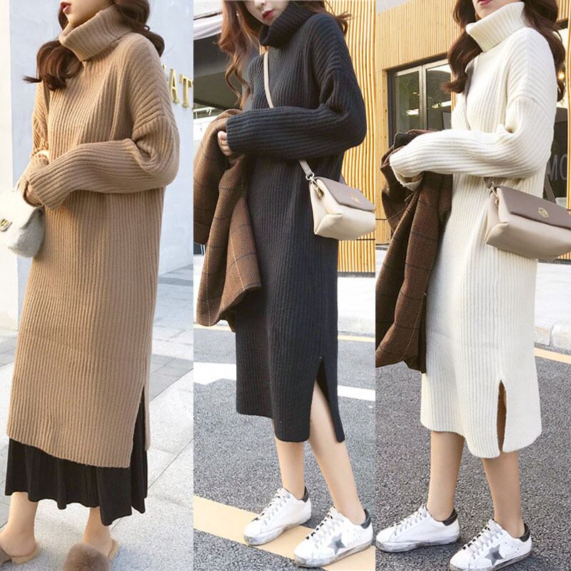 ワンピース ロング丈 ニットワンピ スリット タートルネック 重ね着 ニット 大人 おしゃれ ゆったり カジュアル 無地 シンプル 冬 [ueno0016] | poillypecoraワンピースストア