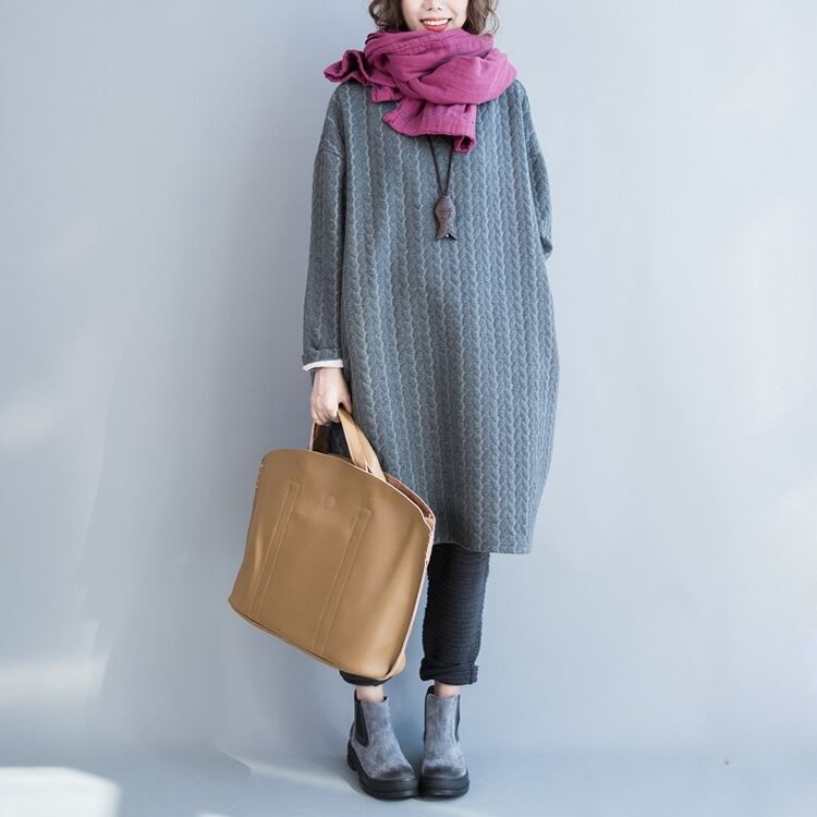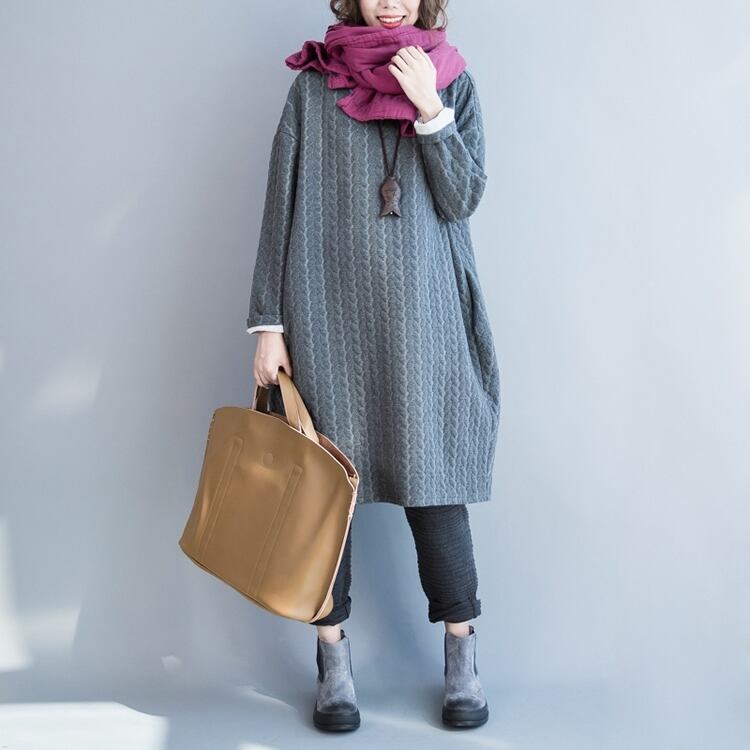 ワンピース ひざ丈 ニットワンピ プルオーバー 着痩せ カジュアル かわいい 無地 シンプル 冬 ゆったり マタニティ 大きいサイズ [ueno0048] | poillypecoraワンピースストア