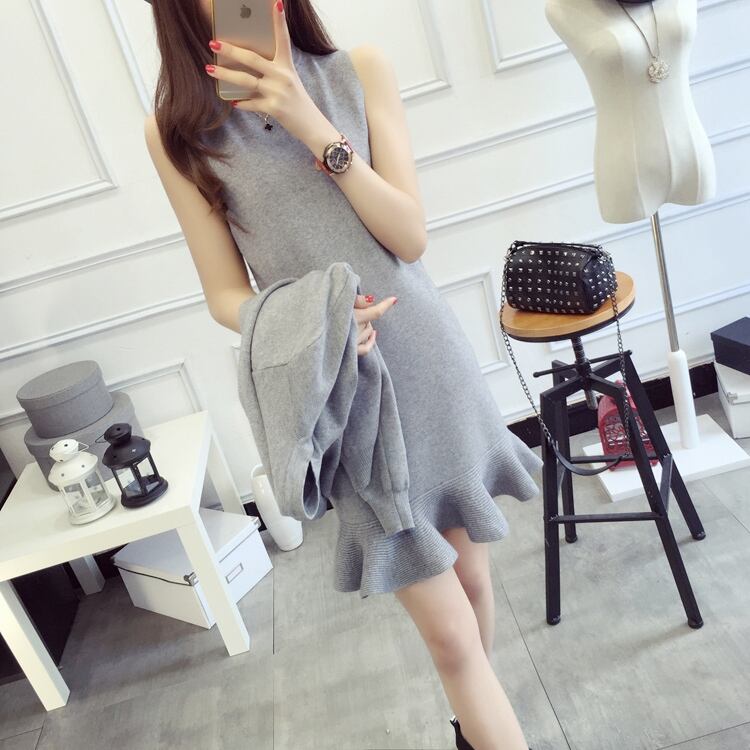 ワンピース ひざ丈 ミニ丈 ニット セットアップ マーメイド カーディガン トップス フェミニン おしゃれ 無地 カジュアル 冬 着痩せ ノースリーブ きれいめ [ueno0066] | poillypecoraワンピースストア
