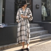 ワンピース ロング丈 マキシ丈 トップス 羽織 チェック リボン シャツワンピ おしゃれ かわいい 冬 カジュアル マタニティ ゆったり 体型カバー [ueno0083] | poillypecoraワンピースストア