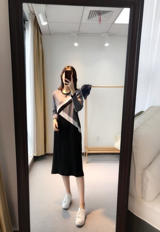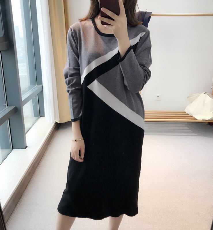 ワンピース ひざ下丈 ロング丈 プルオーバー おしゃれ ニット ラウンドネック シンプル 冬 カジュアル 上品 ゆったり 体型カバー [ueno0086] | poillypecoraワンピースストア