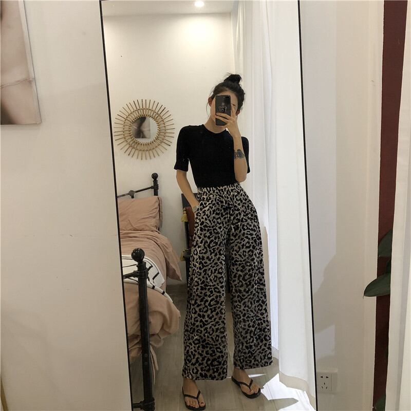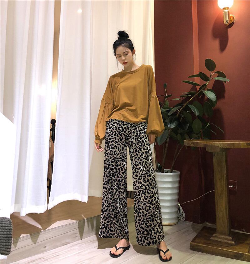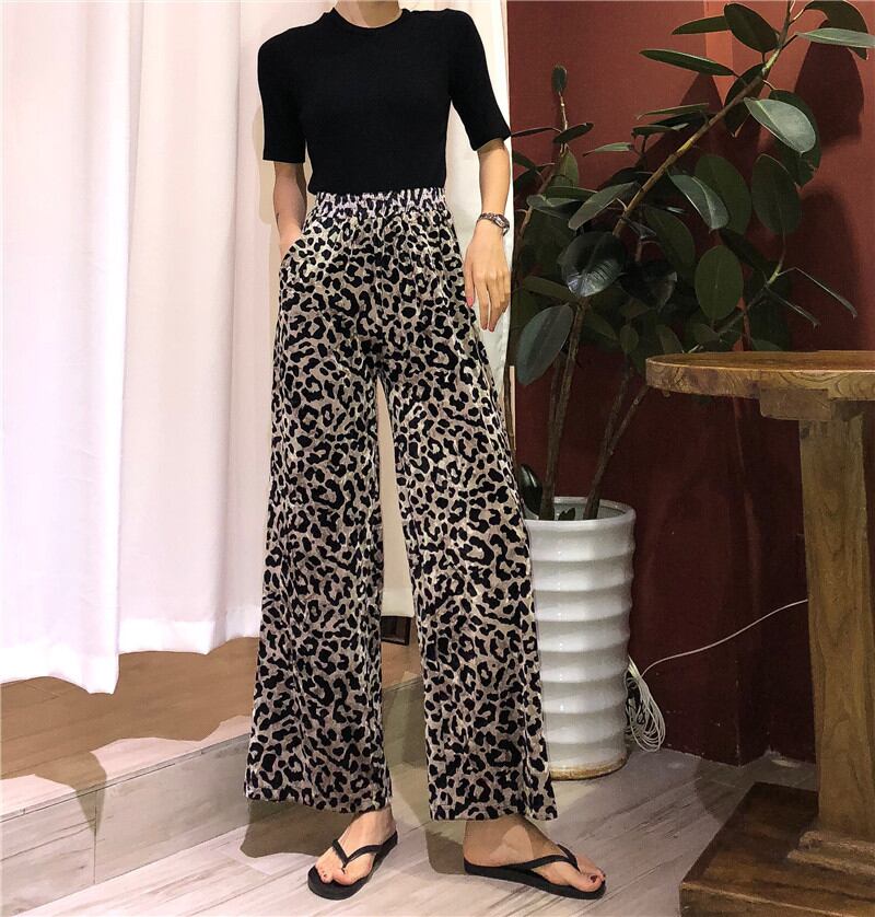 パンツ イージーパンツ ワイド ガウチョ ボトムス ロング丈 レオパード 大人 カジュアル おしゃれ 秋冬 着痩せ 体型カバー ゆったり ベルベット脚長 美脚 [ueno0132] | poillypecoraワンピースストア